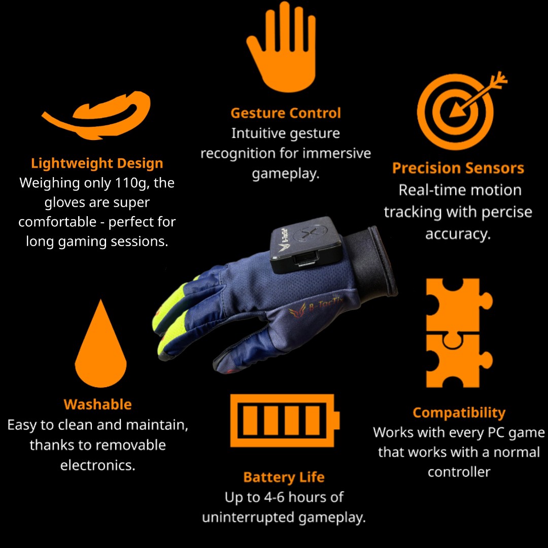 The B-TacTix® motion capture gloves are just the beginning of our ambitious vision to revolutionize your gaming experience. They mark the first step toward the development of a comprehensive full-body gaming suit, designed to bring every movement and gesture into the digital world with unparalleled precision.